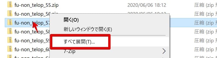 ウィンドウズ標準の機能を使って解凍を行います。このページの例ではWindows10を利用して解凍を行いますが、他のバージョンでも操作方法はとても似ています。