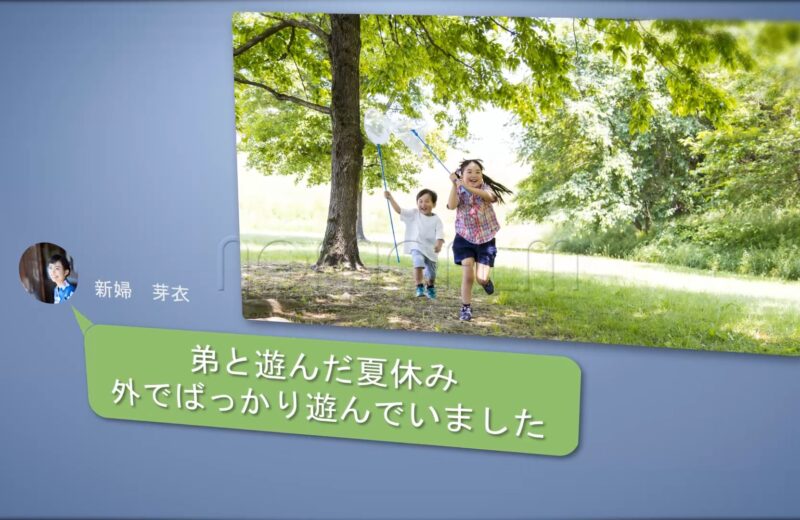 - サンプルに利用されているBGM、写真、フォントは含まれていません。お好きなBGMと写真、コメントを自由に挿入してください。