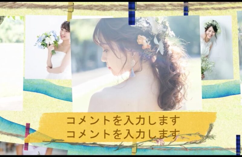 - サンプルに利用されているBGM、写真、フォントは含まれていません。お好きなBGMと写真、コメントを自由に挿入してください。